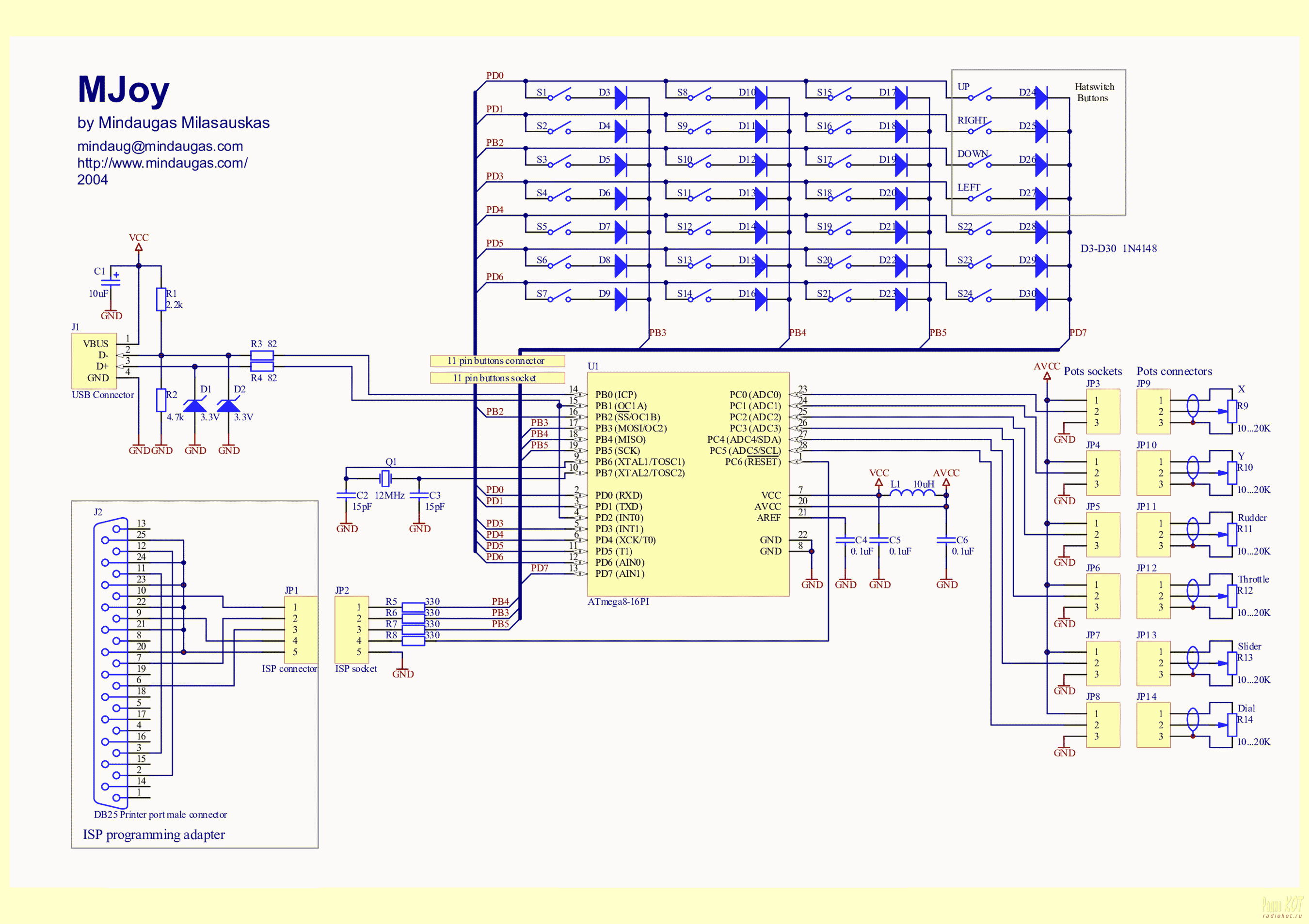 Автор: zverotechnik 13 лет - возраст для Кота хоть и солидный, но для человека самое время чтобы играть, иначе потом и не интересно будет, хотя мне всегда интересно. А как же играть в игры с элементами автосимулятора, если нет игрового руля, педалей и коробки передач? Не у всех усатых детишек есть деньги на столь дорогостоящие аксессуары, поэтому намного проще включить мозги, паяльник и побежать в радиомагазин - тратить бабушкину пенсию. В основе всего лежит контроллер джойстика, называемый MJOY 8. Про него много информации по ссылкам. Если вкратце, то эта штука позволяет, скажем, владельцу ноутбука, управлять виртуальным автомобилем (самолетом/поездом/пароходом) посредством шести аналоговых входов и собственной клавиатуры. http://plakhotenko.narod.ru/r_1.html http://www.joysticks.ru/joysticks/handmade/mjoy.shtml