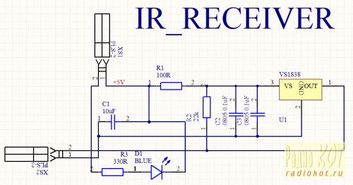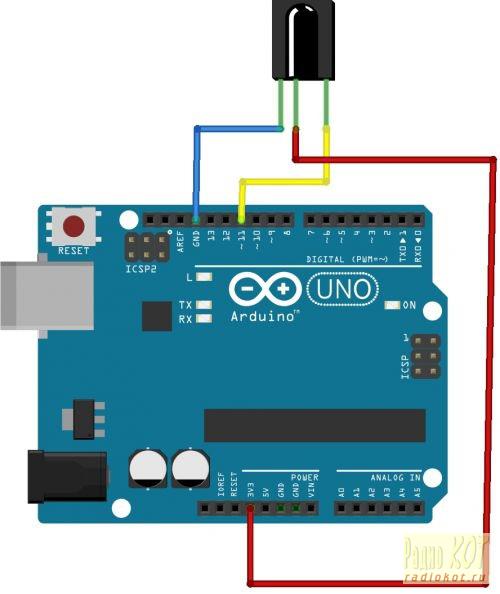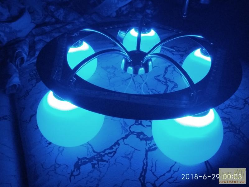 #include "IRremote.h" void setup() void loop() { Подключаем ИК приемник (я использовал VS1838) по схеме: Открываем монитор порта и поочередно нажимаем на необходимые нам кнопки, в терминал будет отправляться код нажатой кнопки. Стоит обратить внимание, что некоторые кнопки при долгом удержании начинают отправлять код FFFFFFFF, что воспринимаеться телевизором/приставкой как повтор нажатия, данная функция в основном реализована на таких кнопках, как Громкость, Перемотка и т.д. Записав все необходимые коды, в начало каждого кода необходимо подставить "0x". Например, код кнопки STOP у меня "E0E0629D", а в саму прошивку пишем "0xE0E0629D". Для управления люстрой у меня используется 26 кнопок, 10 из которых (цифры) используются в качестве ячеек сохранения пользовательского цвета. Чтобы впоследствии сократить размер прошивки приблизительно на 4кб, идем в папку с добавленной библиотекой (у меня это C:UsersUserDocumentsArduinolibrariesIRremote), находим файл IRremote.h, открываем и в самом начале видим протоколы каких производителей поддерживает данная библиотека, у нас пуль ДУ от ТВ Samsung, поэтому проставляем везде 0, оставляем 1 только в строке #define DECODE_SAMSUNG 1 - теперь библиолека IRremote работает только на прием кодов SAMSUNG: Когда я только начинал делать первую плату, столкнулся с проблемой - не работает ШИМ выход (функция analogWrite), при использовании библиотеки IRremote. Данная бибилиотека по умолчанию использует TIMER1, а функция analogWrite так же использует TIMER1. Нужно это исправить. Снова идем в папку с библиотекой и находим файл IRremoteInt.h в нем ищем строки: // Arduino Duemilanove, Diecimila, LilyPad, Mini, Fio, Nano, etc И меняем их на: // Arduino Duemilanove, Diecimila, LilyPad, Mini, Fio, Nano, etc Теперь для распознования ИК сигнала используется TIMER2, и наша функция analogWrite будет работать без проблем. Осталось только подставить в прошивку свои коды кнопок и можно прошивать. Готовая прошивка занимает 8098 байт. Режимы работы Сразу после подачи питания включается синяя лента, и начинает плавно разжигаться белая, затем поочереди, с задержкой 200мС, включаются 5 лампочек, и гаснут обе ленты. Далее мы можем упралять люстрой с пульта ДУ. Подробно каждое действие описано в самом файле прошивки, старался коментировать по максимуму. Вот полный список всех возможностей: 1) Плавная регулировка яркости белой светодиодной ленты 2) Отдельное включение любой из пяти лампочек 3) Регулировка яркости каждого RGB цвета 4) Плавное мерцание белой ленты (затухание и разгорание) с возможностью настройки длительности периода 5) Режим стробоскоп - белая лента часто вспыхивает, частота вспышек настраивается 6) Самостоятельная плавная смена цвета RGB ленты. Скорость смены цвета так же настраивается. Причем есть 3 режима смены цвета 7) Можно одновременно включить белую ленту сверху на любую яркость и включить любой цвет плафона 8) Имеется 9 ячеек памяти для настройки своего цвета и сохранения в EEPROM 9) Пъезопищалка и индикация работы и приема сигнала с пульта ДУ 10)Красивый старт люстры при включении выключателя (всегда перед уходом из дома просто выключаю выключатель, а то мало ли..) 11) Возможность отключения пъезо с сохранением состояния в EEPROM 12) Ну и наконец, самый главный плюс - не нужно ходить к выключателю, т.к. пульт от телика всегда под рукой. Даже если произойдет самое страшное, и пульт останется на столе, то эмулятор данного пульта есть на смартфоне с ИК портом). Фото работающей люстры: Видеодемонстрация работы: P.S Это мо