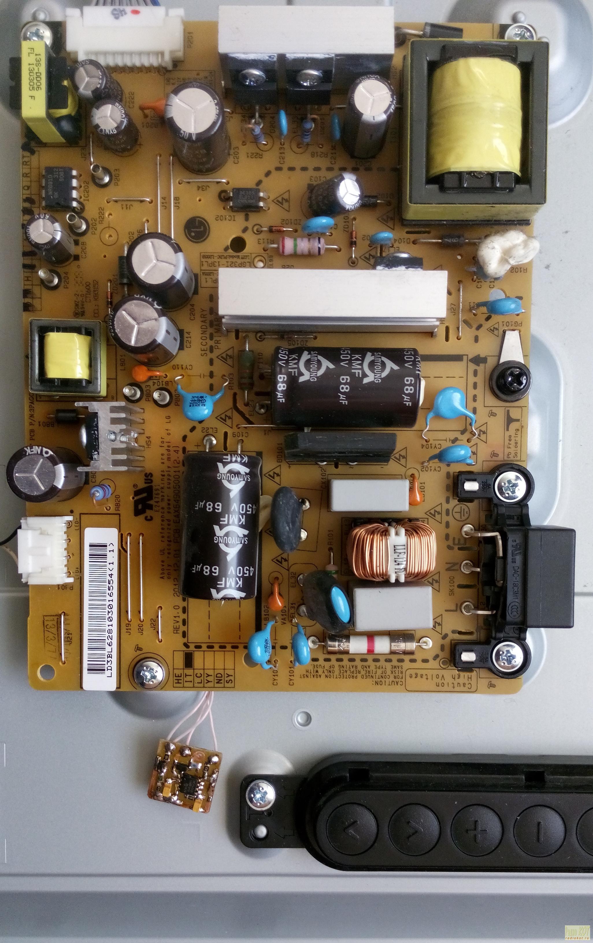 Ремонт такой неисправности в телевизорах с задней подсветкой – удовольствие не из приятных. Чтобы добраться до светодиодных линеек, необходимо разобрать матрицу полностью – со всеми светофильтрами, поляризационными и прочими плёнками. При этом есть риск повредить саму матрицу механически, по неосторожности отслоив от неё приклеенные шлейфы. После ремонта подсветки необходимо собрать всё назад в такой же последовательности. Видеоролики по процедуре ремонта подсветки в данной модели телевизора можно найти на Youtube. Там же был найден интересный ролик «Переводим LED монитор на технологию Flicker-Free (без мерцания)», в котором автор использует фильтр и внешний мощный транзистор, на котором рассеивается избыточная мощность подсветки.