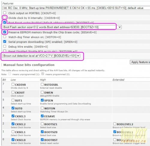 Прошивка и фьюзы. Фьюзы для МК: Прошивка для эмулятора первой версии: Прошивка Эмулятор собран в готовом корпусе с толкателем кнопки. В верхней части корпуса было прорезано окно и закрыто дымчатым стеклом, а вся верхняя часть корпуса накрыта самоклеящейся пленкой. Это призвано обеспечить хоть какую то брызгозащиту. Соответственно, при желании иметь эмулятор с перспективой обновления прошивки без разборки корпуса - в МК нужно зашить загрузчик и следующие фьюзы Кому ближе числа: Lo: 0xA4, Hi: 0xD2 Загрузчик для эмулятора первой версии: Загрузчик.