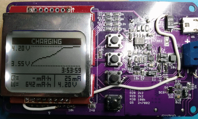 2. Тестер литиевых аккумуляторов от eufs. Тут применен цветной дисплей от СониЁриксона и ATTINY26 в качестве мозга.