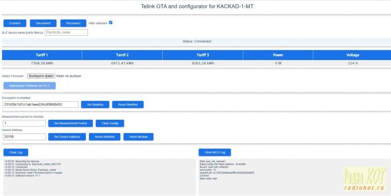 73550400ffff8d4e01300655000a048d4e0655 - после stuffing'а Хорошо, что мне попался счетчик, у которого в пакете постоянно фигурировал 0x73 0x11. А то бы долго разбирались, почему у кого-то работает, а у кого-то нет. Подробности про stuffing и про то, как правильно сформировать пакет тут. Смотреть самый последний счетчик IEK «STAR 104/1». Счетчик не Каскад, но протокол видимо такой же. В общем нашел схему оптопорта Спаял на макетке, поключил к преобразователю USB-UART. И оригинальная программа MeterTools прекрасно прочитала оба счетчика. Немного посмотрел обмен через Wireshark и получил 4 тарифа, ток, напряжение и мощность. А больше и не нужно. Передавать показания собирался с помощью Bluetooth LE. Для этого использовал модуль от Ai-Thinker TB-04-KIT. В действующем устройстве использоваться будет только модуль, но для экспериментов удобней пользоваться KIT. В общем подключил к модулю оптопорт через UART. Все работает. Модуль передает в виде двух рекламных пакетов 3 тарифа, мощность и напряжение в Home Assistant, являясь по сути маячком. Лог. send bytes: 15