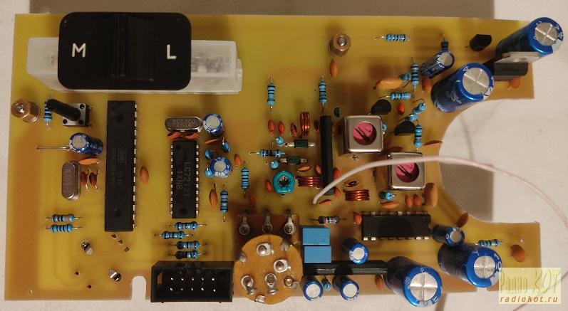 Инструкция по настройке. Собранный приемник, если не допущено ошибок в монтаже, после программирования начинает работать сразу. Необходимо настроить ВЧ тракт. Сначала подключаем антенну, бывший переключатель диапазонов – теперь переключатель режимов сканирование/память переводим в положение сканирование. Сканируя диапазон, находим какую-нибудь станцию. Теперь вращаем сердечник катушки дискриминатора L5 добиваемся наиболее громкого и неискаженного приема. Далее, настроившись на станцию, принимаемую с шумами, вращаем сердечник катушки L4 и также добиваемся наиболее громкого и неискаженного приема. Далее настраиваем бескаркасные катушки. Катушка гетеродина L3 обычно настройки не требует. Настраиваем катушку преселектора L2. Для этого на время выпаиваем конденсаторы – подстроечный С9 и постоянный С14 (можно их изначально не впаивать до настройки). Далее, настроившись на станцию в нижнем краю диапазона, принимаемую с шумами, раздвигая витки катушки L2, добиваемся наиболее громкого и неискаженного приема. Впаиваем обратно конденсаторы С9 и С14 и настроившись на станцию в верхнем краю диапазона, принимаемую с шумами, вращением ротора подстроечного конденсатора С9, добиваемся наиболее громкого и неискаженного приема. Катушку L1 можно не настраивать. Можно повторить 2-3 раза, описанные выше действия, чтоб добиться наилучшего приема. На этом настройку ВЧ тракта можно считать законченной.