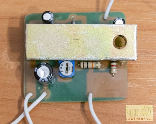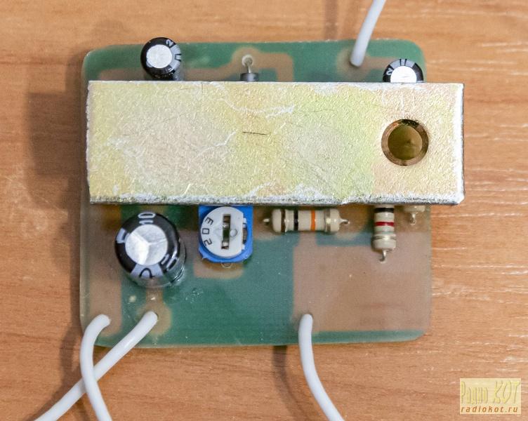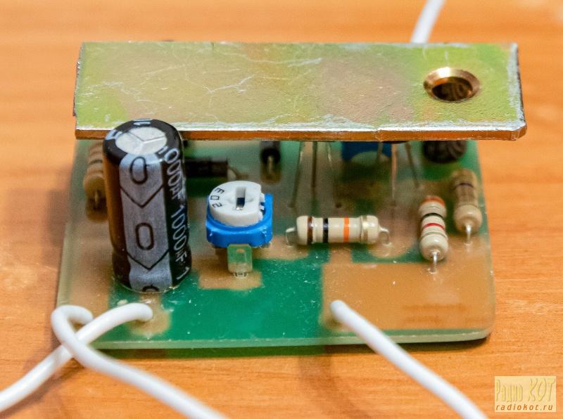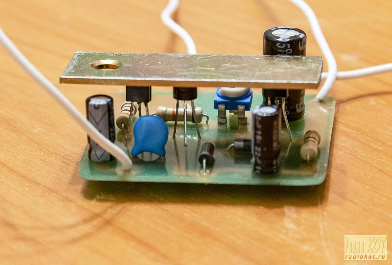 При монтаже схемы транзисторы VT1-VT3 необходимо установить на одной высоте и приклеить верхние части корпусов на небольшой общий радиатор.