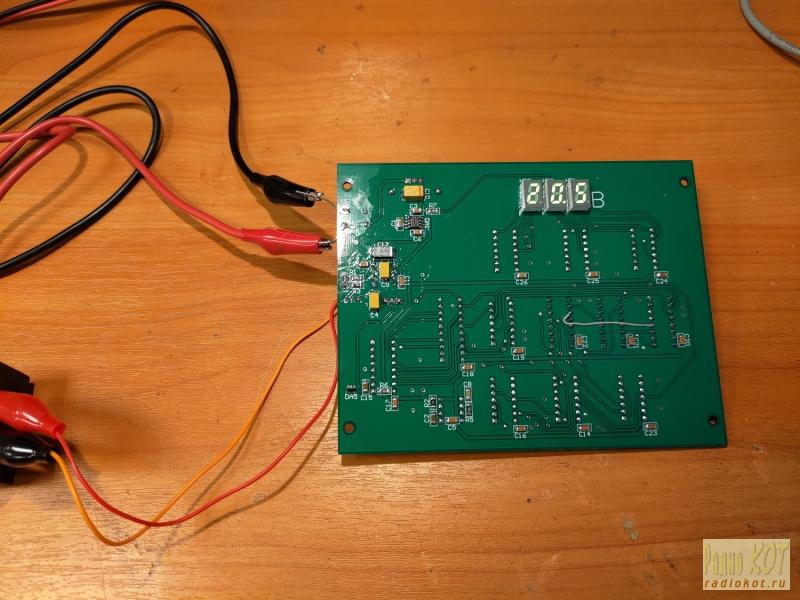 В качестве дешифраторов возьмём старые добрые КР514ИД1. Они имеют встроенные ограничители выходного тока на несколько мА, чего как раз хватает, чтобы зажечь современные светодиодные "восьмёрки" с общим катодом небольшого размера. Перечисленного достаточно, чтобы уже можно было чего-то как-то измерять. Но всё-же немного расширим функциональность. Добавим гашение незначащего старшего нуля при выводе кодов от 0 до 99. Поскольку для вывода старшего разряда используется всего два двоично-десятичных разряда (цифры 0, 1 или 2), достаточно было бы объединить их в логическое ИЛИ и подать на вход разрешения индикации ИД1, что и делает элемент DD3A. Но мы пойдём немного дальше и сделаем индикацию максимального значения напряжения, намекающую пользователю, что сигнал вышел за допустимый диапазон. Определить максимальное значение отсчёта АЦП нам поможет восьмивходовой элемент И-НЕ DD5. Чтобы сделать индикацию заметнее, сделаем так, чтобы индикаторы мигали. Для этого триггером DD2B ещё раз поделим тактовый сигнал на 2 и смешаем его с выходом DD5 на элементе DD1D. При этом для дешифратора старшего разряда логикой DD3B, DD3D дополнительно добавляется сигнал гашения нуля. А элементы DD3C и DD1C, оставшись немного лишними, просто...делают логическую ТТЛ-совместимую единицу для неиспользуемых входов триггеров. Разумеется, их роль могла бы выполнить пара обычных резисторов на 1 кОм. В левом верхнем углу у нас, кстати, притаился ещё один иноагент т.н. преобразователь True RMS to DC AD736. Он преобразует действующее значение переменного тока в близкое к нему значение постоянного напряжения, что позволяет измерять устройством переменное напряжение. Пойдёт ли сигнал с него, или напрямую со входа, можно выбрать джампером на контактах XP2. Учитывая, что AD736 сохраняет приличную линейность преобразования лишь при уровне сигнала в районе примерно до вольта, теперь становится понятно, почему мы выбрали такое низкое напряжение для ИОН. Поскольку для нормальной работы AD736 рекомендуется использовать двухполярное питание, добавлен конденсаторный инвертор напряжения на ICL7660. Кроме того, в качестве C4, C9, C12 в "обвязке" чипа рекомендуется использовать качественные танталовые конденсаторы, иначе возможно значительное ухудшение точности преобразования. Разумеется, если планируется измерение лишь постоянного напряжения, эти чипы можно не устанавливать. Входной делитель напряжения подобран под коэффициент деления, близкий к 20,4, что с установленным ИОН позволяет без каких-либо дополнительных преобразований измерять напряжение в диапазоне 0...25,5В. Поэтому возьмём резистор R7 и зажжём точку на втором индикаторе, чтобы подчеркнуть этот факт. Подстроечник R4 позволяет скорректировать показания устройства в пределах нескольких процентов по калибратору, или образцовому вольтметру, скомпенсировав погрешности сопротивлений делителя и преобразования AD736. Таким образом, мы смогли приблизиться к функционалу, предоставляемому, скажем, хорошо знакомыми вам китайскими встраиваемыми вольтметрами, вроде таких.