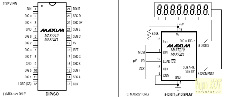 Автор: ejsanyo Приветствую любителей аппаратной логики! А любите ли вы чип под названием MAX7219? Если вы до сих пор не знаете, что это такое, то обязательно ознакомьтесь, может пригодиться. Если вкраце, это универсальный драйвер для символьных и точечных светодиодных индикаторов. Был запущен в производство, вероятно, где-то ещё в начале 2000-х, а может и раньше, корпорацией Maxim Semiconductors. За годы стал чрезвычайно популярен, выпускается до сих пор, в том числе современными китайскими компаниями! (Вероятно, за давностью лет закончились патентные сроки?) Несмотря на то, что в наше время в нише простой светодиодной индикации его немного потеснили уже чистокровные китайцы, в частности, TM1637 за счёт своей минимальной стоимости, снятие с производства в ближайшей перспективе ему явно не грозит. Чем же заслужил MAX7219 такую популярность? На то есть немало причин: