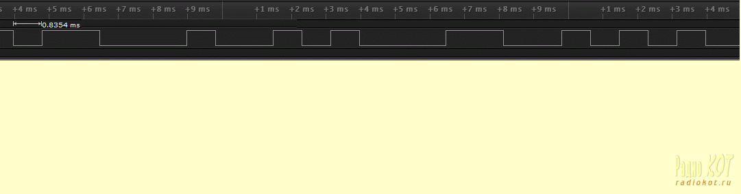 он оказался равен 0,8354ms. Причем, такой длительности были как "единичные", так и "нулевые" импульсы.
