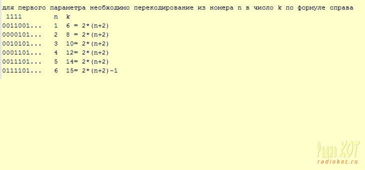 Ни как не получалось понять последовательность бит для первого параметра