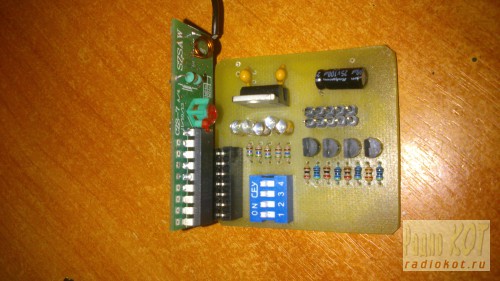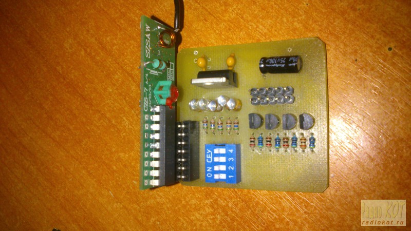 Автор: Сеьён и так начнем так как я и сам являюсь начинаюшим так что судить строго не стоит) заказал я в интернете пулт и приемник на 4 комнады с независимыми друг от друга выбор остановил на Приёмнике CZS-7M и пульте SYK200-4G.Рабочая частота: 433,92 MHz. а в качестве кодера применена микросхема KEELOQ HCS301. ![]() ![]() далее собрал так сказать драйвер управления нагрузками и питане платы приемника схемы нету т.к рисовал сам сразу в программе печатку вы найдете ниже кому сильно будет что то не понятно нарисую схему ) ![]() и так что мы тут видим питается эта плата от 12в на каждый канал подключен светодиод для определения входного сигнала. микро тумблеры можно не устанавливать они у меня для того чтобы включать отключать выходные транзисторы.Вход питания и выход сигналов осушьствляется через штырьки далее я нарисовал плату управления двигателем открывания и закрывания штор так же сразу из головы и так же без схемы) но я думаю все понятно ![]() ![]() конденцаторы установлены для управления временем удерживания реле проше говоря чтобы шторы успели полностью открытся или закрытся поэтому емкость подбираем сами) у меня например 1500mf реле на 12 вольт вход питания мотора находится на штырьках которые с права а выход на двигатель с лева. Когда будет включено одно из реле двигатель будет крутится в одну либо в другную сторону. питание этой платы у меня 38в т,к мотор у меня мошьный далее собрал плату управления светом тут получилось вообше все в каше и куче придумывал ее весь вечер дак чтобы и включение и выключение света осуществлялось нажатием только на одну кнопку пульта и вот что получилось ![]() ![]() судь в этой схемы в том чтобы она удерживала реле которое работает на нагрузке ну предположим на сет реле которое находится по середине перекрючает сигнальный провод в зависимости включена ли реле слева или выключена реле с лева удерживает и включает реле по середине этим самым водя напряжение на штырьки а реле которое находится слева выключает обесточивая оба реле и так в замкнутом цикле D вообщем сам не понял что нахимичил работает и рад) теперь поговорим о питании этой сзхемы два штырька которые по отдельность это вход питания 12В правый минус левй плюс а другие штырьки идут на питание реле которое будет управлять вашей нагрузкой на свет собрав все в кучу подключив питание все далжно заработать и выглядит это вот так вот ![]() Забыл сказать что питается все 3 схемы от разных источников !!!