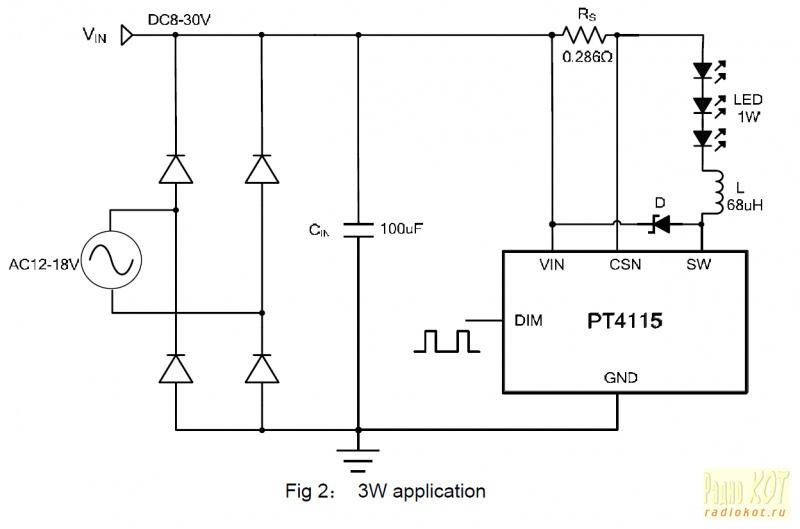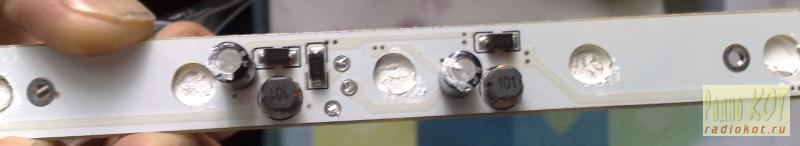 Автор: SSMix Многие автолюбители, после приобретения и установки на свой автомобиль дневных ходовых огней (ДХО) неожиданно для себя обнаруживают, что до этого исправно работающий радиоприёмник автомагнитолы при включении ДХО начинает выдавать один шум. Причём речь идет не о средних и длинных волнах, а о УКВ и FM диапазонах, где помехозащищённость намного выше. Такой сильный уровень радиопомех получается не от всех ДХО. Всё зависит от схемотехники встроенного импульсного преобразователя (если он вообще присутствует). Схема оказалась предельно простой, выполненной на двух светодиодных драйверах PT4115. Один из драйверов нагружен на три последовательно включенных светодиода, второй на два. Кстати, именно поэтому при плавном повышении напряжения питания сначала загораются два светодиода, а затем остальные три. Типовая схема включения PT4115 приведена ниже: В фаре DRL101 схема включения несколько иная: диодный мост на входе заменён одним диодом SS14, токозадающий резистор Rs составлен из трёх параллельно соединённых резисторов по 1 Ом, индуктивность дросселя L составляет 100 мкГн, и на вход DIM (ШИМ управление яркостью) внешний сигнал управления подаётся через транзисторный инвертор. 1) Параллельно электролитам 100 мкФ запаяны чип-конденсаторы 1206 на 0,68 мкФ 50В. Можно использовать даже в корпусе 1210 для лучшего поглощения радиопомех. Каждый фильтр собран на печатной платке из одностороннего фольгированного стеклотекстолита размерами 11х12 мм: Плату даже не обязательно вытравливать – достаточно прорезать две полоски крест-накрест и механически удалить фольгу. Перед окончательной сборкой доработанных таким образом фар желательно промазать стыки корпуса силиконовым герметиком для обеспечения влагостойкости. Испытания доработанных ДХО производились за 35-40 км от города. Производилось периодическое включение/выключение ДХО и прослушивание станций УКВ и FM диапазонов. Никаких помех радиоприёму не наблюдалось даже на слабых станциях. Таким образом, подобную доработку можно рекомендовать владельцам не только описанной модели ДХО, но и других подобных, создающих значительные радиопомехи. Как правило, схемы у таких фар подобные.