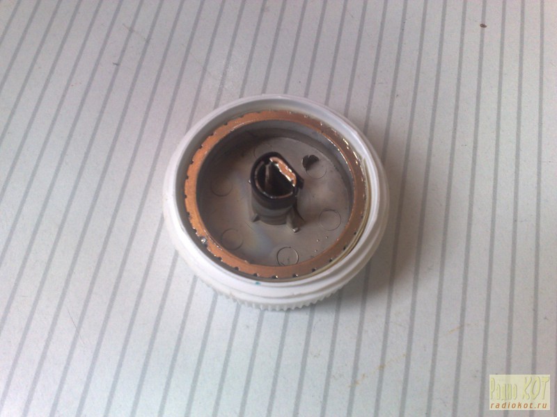 Ручку настройки от приемника необходимо вклеить внутрь крышечки от пищевого продукта, соблюдая правила симметрии.