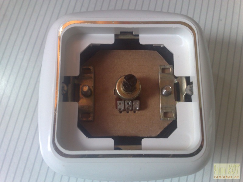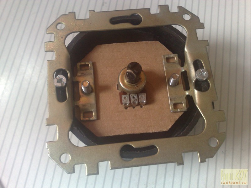 Автор: Игорь Парунин, egor-palunin@rambler.ru Рецепт приготовления красивого диммера, с простой, но очень полезной, начинкой. Для приготовления диммера нам потребуется: Не глубокая розетка (советская). Накладная или под-штукатурная, выбираете по вкусу или месту применения. Пластиковая крышечка от пищевого продукта, продукт выбираете по своему вкусу, а вот с крышечкой следуйте рецепту. Ручка регулировки, от какого либо старого приемника, в мое «блюдо» очень хорошо вписалась ручка настройки на волну от приемника «ВЭФ». Материнская плата от компьютера. Так… подробности о крышечке. Она должна очень точно подойти под диаметр углубления в декоративной накладке на электроарматуру или вовсе его перекрывать на небольшую величину. Далее… разбираем розетку на составляющие и из получившейся кучи берем только металлическую арматуру с креплениями, декоративные накладку и рамку. В декоративной накладке по центру есть отверстие для крепежного винта. Нам необходимо рассверлить это отверстие до диаметра оси потенциометра, который мы будем применять. В моем случае был потенциометр со стандартной осью, выдернутый из какой-то китайской автомагнитолы, прихвеченой по случаю на каком-то стихийном мусорном отвале.