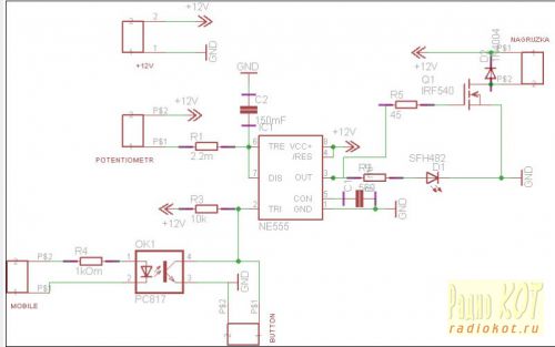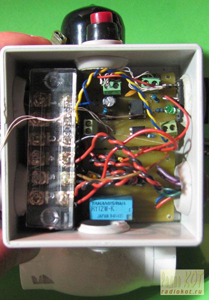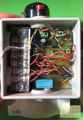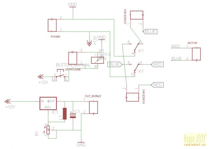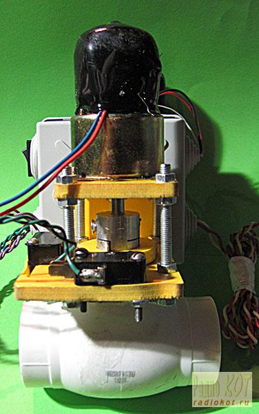 Автор: sancta Добрый день, всем уважаемым котам! Немного не успел дособирать свою систему автоматического полива к началу сезона. Но лучше поздно, чем никогда. Как известно, растения требуют не меньшего ухода, чем коты. А именно постоянного полива. Сейчас конечно есть много предложений и готовых систем, но ведь не в этом смысл радиолюбительства. Мы пошли другим путём. Взяли и сконструировали автоматический полив из буквально того, что нашли в закромах. Итак, суть и задача, которая была поставлена нам. Необходим полив по расписанию. Полив организуется из бака самотёком. 220в не подведены, а потому питание происходит от аккумуляторной батареи. Так как напора в магистрали почти нет - стандартный и всем известный клапан с катушкой нам не подходит. Уж очень у него проходное сечение мало. Поэтому мы будем делать кран с сервоприводом. Для начала находим подходящий двигатель с редуктором и убеждаемся в том, что он может провернуть кран. У меня такой лежал от какой то техники. И хотя на нём было написано 24в, он прекрасно справлялся с задачей будучи подключенным на 12в. Как соединить двигатель и вал каждый волен придумать сам. У меня таких проблем не было, т.к. в моей мастерской водится не только паяльник, но и токарничек и небольшая чпу-ка фрезер. Двигатель управляется через два концевых выключателя и реле. Реле 8 - ми контактное. Как мы видим - схема довольно таки простая. Реле меняет полярность выводов на двигатели. А наезд на концевик автоматически прерывает подачу питания на двигатель. Нижняя на картинке пара контактов заставляет двигатель закрываться. Доезжая до концевика, двигатель останавливается. Концевики могут перемещаться и тем самым регулируют степень открытия и закрытия крана. Логика этого участка. Когда подается питание на катушку реле -контакты переключаются на открытие. Двигатель работает, пока не наезжает на концевик, который прерывает питание. Пока не снята нагрузка с реле, двигатель стоит (и при этом не потребляет ток!). Как только питание с реле пропадает, на двигатель подается обратная полярность. И так как концевик его в этот момент замкнут - двигатель опять крутится до его разрыва. С механикой всё. Теперь электроника. Здесь всё уже гораздо проще. На нашем любимом таймере 555 была собрана схема задержки сигнала. Задержка регулируется от десятков секунд до 10 минут примерно через переменный резистор. Вход на всякий случай посажен на оптопару. Мало ли откуда может поступать нам сигнал (но это на будущее). И небольшое дополнение, не вошедшее в схему. Полевик я ставить не стал. Оказывается выхода 555 микросхемы хватает чтобы упарвлять реле! Теперь самое интересное. А откуда кран будет знать когда ему включаться то? Микроконтроллеры с RTC это тема для будущего воплощения. Сейчас хотелось что то быстрого и примитивного. Решение возникло неожиданно. Говорят что у каждого человека в мире есть старый мобильный самсунг. Отковыряв такой и удивившись его живучести я попробовал его запустить. Но батарея давно сдохла. Подав на контакты батареи 4.1в я с удовольствием наблюдал как телефон загрузился. Полазив по меню я нашел в нём достаточно большой список всевозможных будильников. А будить он нас может и мелодией и виброзвонком. Причём как вместе, так и по отдельности. А это мысль сказал я себе и подпаял вместо моторчика провода на вход 555 схемы. И схем