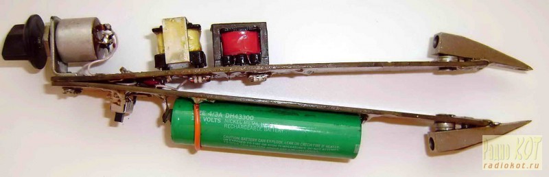 Автор: Simurg Всё гениальное – просто! Что такое ЭПС, или по английскому ESR все знают. Существуют множество пробников по выявлению неисправных или некачественных конденсаторов (если покупаете на рынке). А вот как определить некачественный конденсатор с низким внутренним сопротивлением LOW ESR, которые все чаще устанавливаются в различной технике, компьютерах, и т д.? Очень часто неисправности плат возникают из-за повышенных пульсаций питающего напряжения, а в цепях питания почти всегда присутствуют электролитические конденсаторы. Именно они в первых рядах имеют самую низкую надежность. Практика показывает, что большинство материнских плат, работающих с внезапными перезагрузками и выключениями, а также нестабильностью работы, связаны в большинстве случае неисправностью электролитических конденсаторов. Например, глючит видеокарта, вы снимаете её ставите заведомо исправную и все работает. Тогда начинаете ближе разбираться с неисправной в надежде возобновить исправную работу. Визуально все нормально, конденсаторы все как новые ровные, не надутые. Но ведь даже у визуально не вспухшего конденсатора может быть недопустимо высокий ESR — 0,10 ом! Такой конденсатор ощутимо разогревается, и может протечь на плату, попортив переходные отверстия электролитом. Для работы в ШИМ-преобразователях он просто не годится. Предельно допустимое значение для LOW ESR конденсаторов в ответственных и нагруженных цепях — 0,04 Ом, а лучше до 0,03 и менее. Внешний вид устройства. В данный момент на фото запечатлен найденный неисправный конденсатор, который, если очень внимательно рассмотреть слегка надут в отличие от рядом стоящего. Это и была настоящая неисправность, из-за которой видеокарту подвергли не нужному прогреву чипа, накручиванию большого радиатора и, в конце концов, она была доломана и отдана мне на детали (но было уже поздно, на платформе чипа прокрутили саморезом дорожки, при установке еще большего радиатора на не греющийся чип : ) )….. А это показания исправного конденсатора: Цели, которые достигались при проектировании измерителя: - максимальная простота - высокая надежность - измерение на частоте 100 - 110 кГц - измерение низким напряжением (до 0,2 вольт) - точность измерения - растянутая шкала в диапазоне до 0,5 Ома - низкое энергопотребление - работа от одного аккумулятора напряжением 1,2 вольта - длительная работа без зарядки аккумулятора - отсутствие неудобных проводов витой пары - мощные щупы для пробивания окислов и лака - минимум корректирующих настроек - повторяемость - минимальная стоимость Было собрано несколько вариантов измерителей. Варианты, когда схема с измерителем и микроамперметром находятся в коробке, а щупы выведены проводами крайне не удобна, так как провода необходимо плотно скручивать вместе, и они не могут быть длинными. При частоте 100 кГц даже слегка раскрутившийся провод, дает ухудшение показаний и исправный конденсатор может быть ошибочно забракован, а реальная неисправность не найдена. Фото старого варианта исполнения измерителя: Решено было перенести схему с высокочастотной частью и питанием в отдельный блок в виде пинцета, а микроамперметр отдельно. Так как микроамперметр питается постоянным напряжением, то провода к нему не нужно скручивать и они могут быть любой длинны. Для особо пугливых к трансформаторам, то предупр