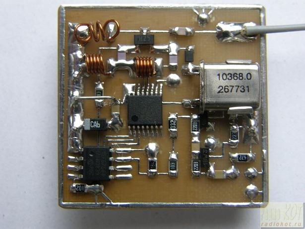 С кварцем 13 МГц передатчик абсолютно без проблем работал на частоте 565,5 МГц, тогда как программно заданная частота для него была 435 МГц.