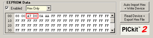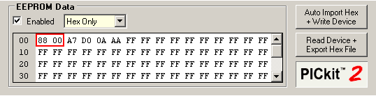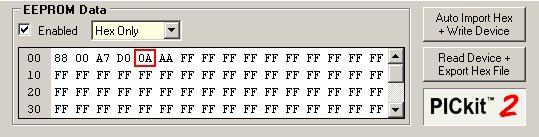 Число 00 ( первая ячейка EEPROM ) - опциональные установки ( их трогать не нужно ).