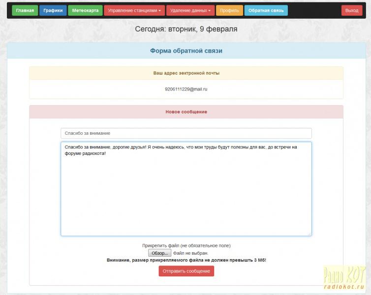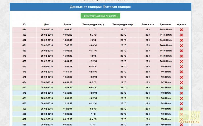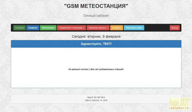Разумеется, первое. Что необходимо сделать- это зарегистрироваться, поэтому переходим в раздел регистрация и заполняем 4 поля Собственно здесь всё просто, единственное - поясню. Поле «адрес электронной почты» нужен только для того, что бы вы могли воспользоваться формой обратной связи, больше, нигде и никогда это значение не фигурирует. Так, что можете не боятся, что я украду вашу эллектронку! В любом случае, позже в разделе «Профиль» всё можно будет изменить. Прежде всего, необходимо добавить метеостанцию в свой список, здесь просто- Нажимаете на меню «Управление станциями» , выбираете пункт «Добавить новую метеостанцию» После чего заполняете все поля И так, что к чему и почему. Во первых IMEI модуля станции. IMEI станции- это основное и КЛЮЧЕВОЕ поле. Т.е. это уникальный номер GSM модуля, именно по этому номеру проходит идентификация и авторизация станции на сервере, ошибиться здесь нельзя. При чём, как я писал ранее, до тех пор, пока в базе не будет этого номера, все данные со станции будут игнорироваться. Где взять?? Не, не у «алика», смотрим на наш модуль и вот он родимый Вбиваем все эти циферки в поле IMEI. Главный момент, где стоит проявить внимание и это единственное поле, которое позже нельзя будет изменить, всё остальное, как в случае с профилем- меняется. Добавить станцию с двумя одинаковыми IMEI- нельзя. Если так случилось, что вы решили отдать станцию- соседу, другу, свату, брату, то сначала удалите её в своём кабинете. После добавления у вас сразу появится банер. В банере содержится 2 графика, температура наружная и внутренняя, информация берётся с ПОСЛЕДНЕЙ добавленной станции в кабинете. Разумеется, если данных ещё нет- то графики будут "нулевыми". Данные которые были приняты «сегодня»- помечаются красным. Также, можно посмотреть данные за конкретную дату, нажимаете кнопку «Просмотреть данные по датам», выбираете число- всё. Ответы по запросу баланса. Здесь всё понятно и ясно, зеленым помечаются записи, сделанные "сегодня". Теперь, вновь возвращаюсь к началу. Почему расходы по сотовой связи достаточно не высоки? ( сразу- прошу не обращать внимание на мои значения баланса, т.к. симку я дёргал туда- сюда между несколькими проектами, поэтому где- то резко баланс снижается) Дело всё в том, что как таковой трафик можно вместить в пару килобайт за сутки, при чём 99% трафика составляет аплоад, который, на сколько я знаю, у некоторых операторов- вообще не тарифицирется, а даунлоад, как таковой станция не использует, разве что кроме запроса кода проверки баланса при включении. Поэтому, расходы и приравниваются, практически к 0. По умолчанию выводится 40 точек, это 1,6 суток непрерывной работы, при желании- можете вывести своё количество точек, выглядеть это будет примерно так: Меню «Удаление данных» В этом меню вы сможете удалить все показания станции. Для удаления выбираете станцию, после того, как откроется страница подтверждения в поле, необходимо написать DELET. При выполнении команды «удаления данных», удаляются только показания, запросы баланса и прочее остаются. Почти всё. Осталось пару пунктов на которых я бы заострил внимание, остальные меню кабинета- увидите сами, они абсолютно понятны. Посмотреть данные можно нажав на лейбел станции, тогда вы увидите примерно следующее Сразу сообщу, что положение станции- приближено к реальности, это координаты ко