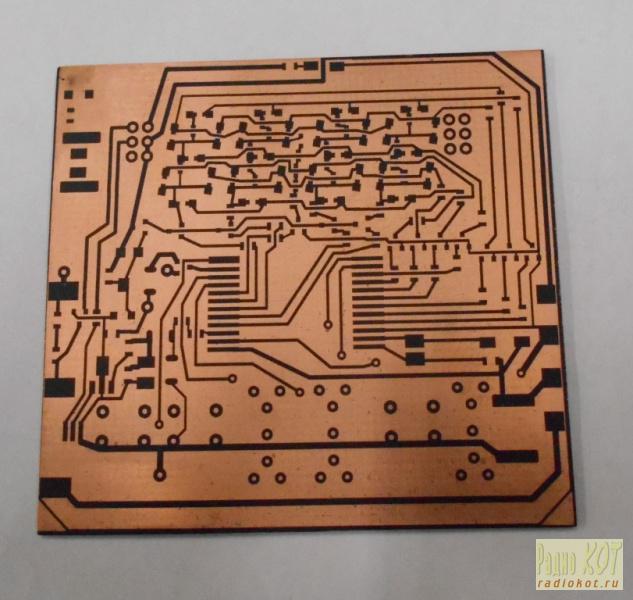 Отправляем в персульфат аммония травиться. Вот более чем удовлетворительный типичный результат. Сверлим, зачищаем, моем, сушим, наносим пасту и наклеиваем смд часть. Микросхему КА1016ХЛ1, триммеры и кварц оставляем на доустановку. Пропускаем сквозь печь, желающие могут осуществлять монтаж в соответствии со своими предпочтениями. Распечатываем на 3D принтере. Пробуем сборку