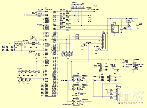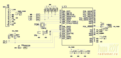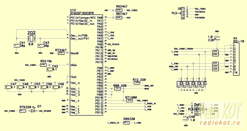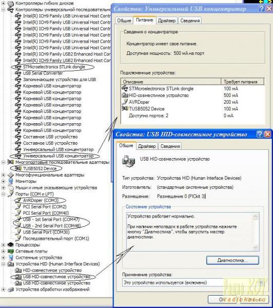 М-да, что-то пробило меня сегодня на классику… Причем все как-то больше в ключе сочетания несочетаемого. Что странно, поскольку речь у нас пойдет о вполне себе живом устройстве, хоть и спорном в чем-то. Но – обо всем по порядку. ST-Link’и, AVR-ISP’ы, несколько Discovery, пачка STK200+/300, Real ICE, кучка всякого менее распространенного, но от этого не менее нужного железа… Нет, все здорово, но обилие интерфейсов, проводов, переходников, шлейфов и коннекторов иногда все же надоедает. Захотелось чего-то если не более универсального, то уж более компактного точно. В результате родился вот такой программатор: В подходящем по размеру корпусе от USB-хаба C-Net имеются: ST-Link/v2, AVR-Doper, PICkit 3, пара TTL-совместимых RS-232 (только Rx-Tx) и два USB-A разъема для подключения прочей периферии. Питание от USB или внешнее, полная гальваническая развязка от входного USB. Выходные разъемы – BH-10R, распиновка следующая: Распиновка разъемов программаторов выдержана в едином стиле, если перепутать – ничего страшного случиться не должно… Ну, хотелось бы в это верить) U3, U5, U6 – DC-DC преобразователи для развязки питания, не знал, какой именно попадется под руку, так что развел на плате несколько распространенных среди меня вариантов. К USB-портам 1-3 подключены, соответственно, ST-Link/v2, PICkit 3 и AVR-Doper, порты 4 и 5 выведены наружу. Также наружу на разъем BH-10 выведены два порта RS-232. Правый нижний угол схемы занимает система коммутации питания, которая позволяет подавать на программируемый микроконтроллер напряжение 3,3В, 5В или вообще отключить его (на разъем ST-Link/v2 может быть подано только 3,3В). Этим заведует микроконтроллер Attiny13 (U8), по кнопке переключающий управляющие сигналы для оптореле, коммутирующих питание, и осуществляющий индикацию на семисегментном индикаторе HL1 (отображаются символы «-», «3» и «5»). на вот такой плате (все можно скачать в конце статьи, фотографий устройства, как и его самого, не сохранилось): В принципе, ST-Microelectronics из схемы этого устройства тайны не делает и ее можно найти на сайте компании или посмотреть в документации к разнообразным Discovery-платам для STM32. Здесь на разъемы выведено довольно много разных интерфейсов, большинством которых я не пользуюсь, поэтому в рассматриваемом программаторе схема упростилась вот до такого вида: Наружу я вывел SWD и SWIM, в моей практике этого достаточно. На плате сохранен разъем с сигналами JTAG, но, честно скажу, на этом программаторе пользоваться им не доводилось. Она уже сильно упрощена по отношению к оригинальной (которая тоже не тайна, на сайте Микрочипа есть документация на этот программатор). Например, для генерации повышенного напряжения (12В) используется DC-DC преобразователь, исключены цепи управления напряжением питания целевого микроконтроллера и измерения этого напряжения и т.д. В моих реалиях это решение оправдано, т.к. в хозяйстве есть и честные полнофункциональные программаторы, а область применения этого клона несколько иная. В собранном виде оно выглядит так: В нашем устройстве схема еще немного уменьшилась, исчезли кнопка и лишние светодиоды: А вот с AVR-Doper все банальнее. Аппаратно он основан на схеме AVR910 от Protoss’а (подробно можно посмотреть в этой статье), тут все предельно просто: Некоторое время размышлял, не развести ли на плату AVRISP-MKII, но все же решил этого не делать. TPI и PDI нужны крайне редко, программатор под них есть. В остальном – для ме
