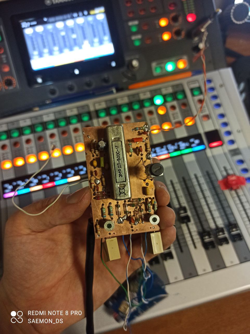 А пока, я упростил схему, убрав один пока не нужный генератор и заменив-упростив варикапное управление вторым генератором просто переменным кондёром. Но и этот вариант не работает. Меряю частотомером везде где могу. ЧастОты вроде бы везде есть. На входе и выходе ЭМФ есть. (во втором и третьем контуре заменил короткие сердечники на длинные, чтобы быстро их всовывать-высовывать (и резьбу не разнашивать) , чтобы вообще понимать, влияет ли эта настройка или нет). Прохождение звука я пытаюсь отслеживать, но не знаю, что с ним происходит после R9, кроме того что он гасится примерно на процентов 70. (там уже осциллом надо работать, но его нету). И повторяю свой вопрос про совсем мне не понятное что-то..(постоянное напр.?) идущее с точки соединения R4+R5 на правую часть схемы. И в диодный смеситель и в оконечный каскад усиления. Где Вы, энтузиасты? Собрали вы свои варианты? Поделитесь знанием - как вы определили начала и концы обмоток катушек-контуров?)