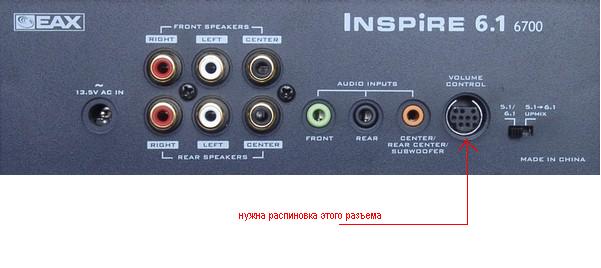 Досталась система 5.1 Creative Inspire 5300 без блока питания и проводного пульта д/у. Питание подал через трансформатор ~12V. Помогите пож-та разобраться с распиновкой разъема пульта.