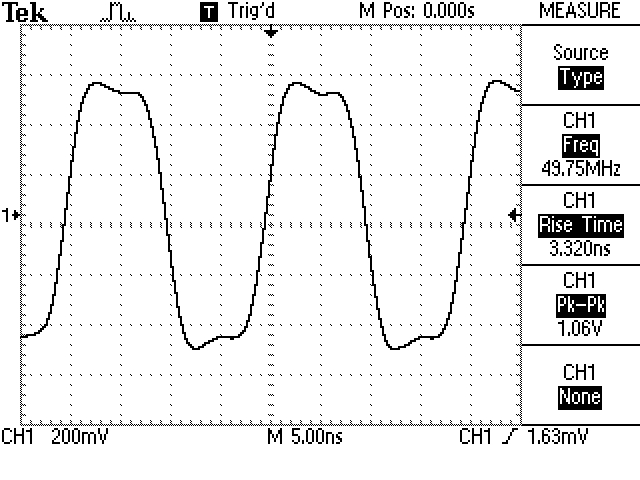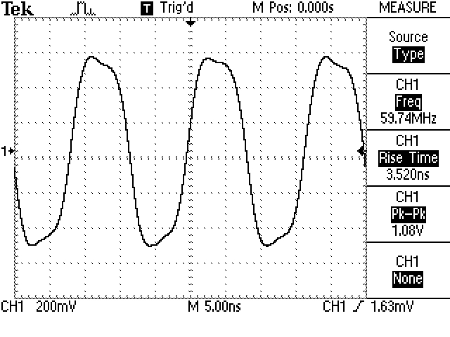 Было бы идеально, если бы какой-нибудь владелец осциллографа с полосой в 120 МГц (а ведь многие "широкополосные" цифровики имеют опцию "сужения полосы"?) запостил сюда две картинки - меандра 60 МГц и меандра 40 МГц, в качестве иллюстрации к обсуждению номеров гармоник.