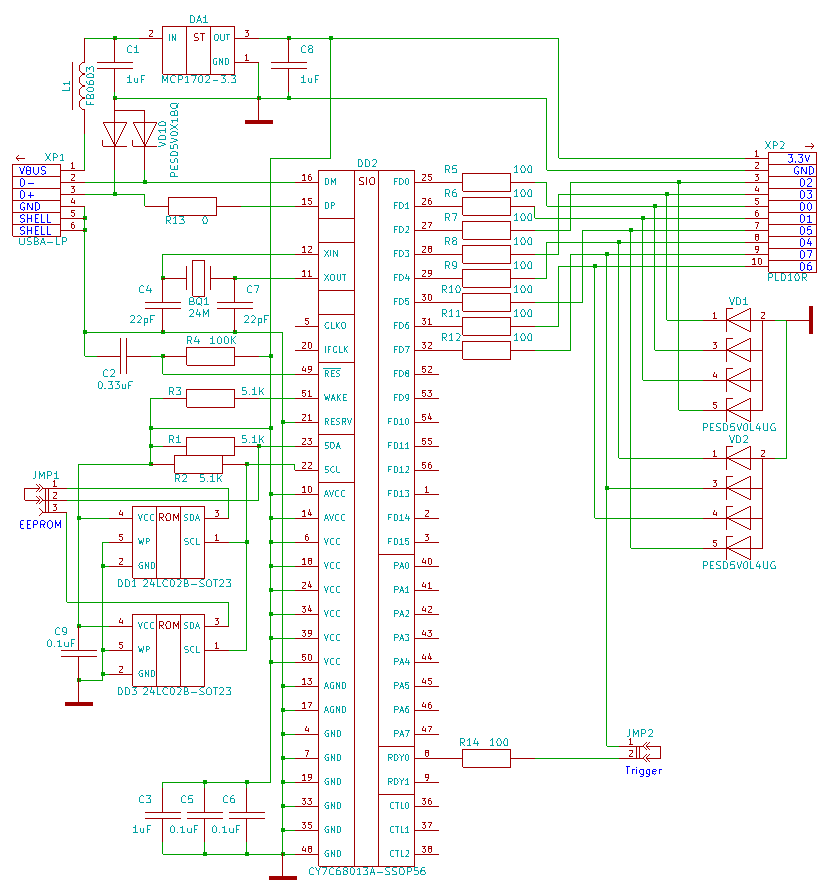 действительно простая интуитивно понятная схема.. но у меня пока лежит в коробке, без памяти.. ждет своего часа. тк достать 12нс проблематично, да и времени паять пока нету.. то учеба, то командировки печатку разводил в кикаде, да кажется похоронил вместе с винтом. хотя в середине июня думаю доделать. да и софт придется переписывать. он слишком беден по функциям. фактически можно только смотреть на дерганье ног.