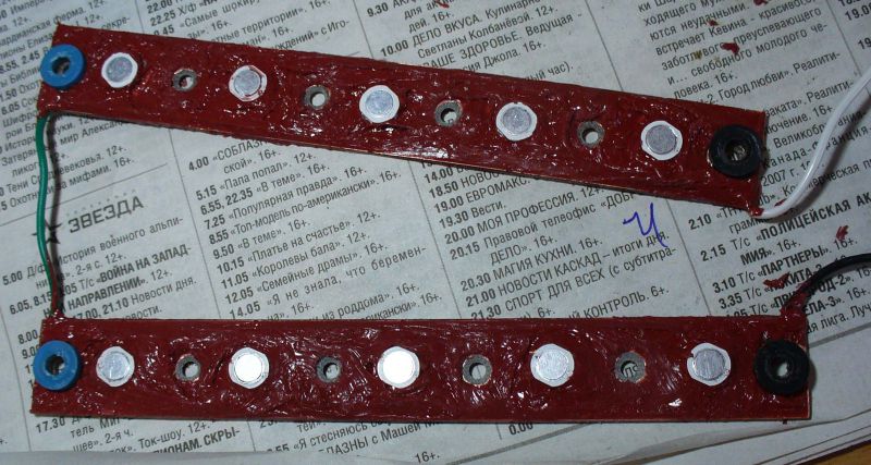 Приличные лампы могут спереть, а на такую конструкцию вряд ли позарятся. ЛН перегорают часто да и потребляют прилично. Попробовал соединить 4 штуки, посмотреть как светят и греют. Прикрутил на алюминиевую пластину.