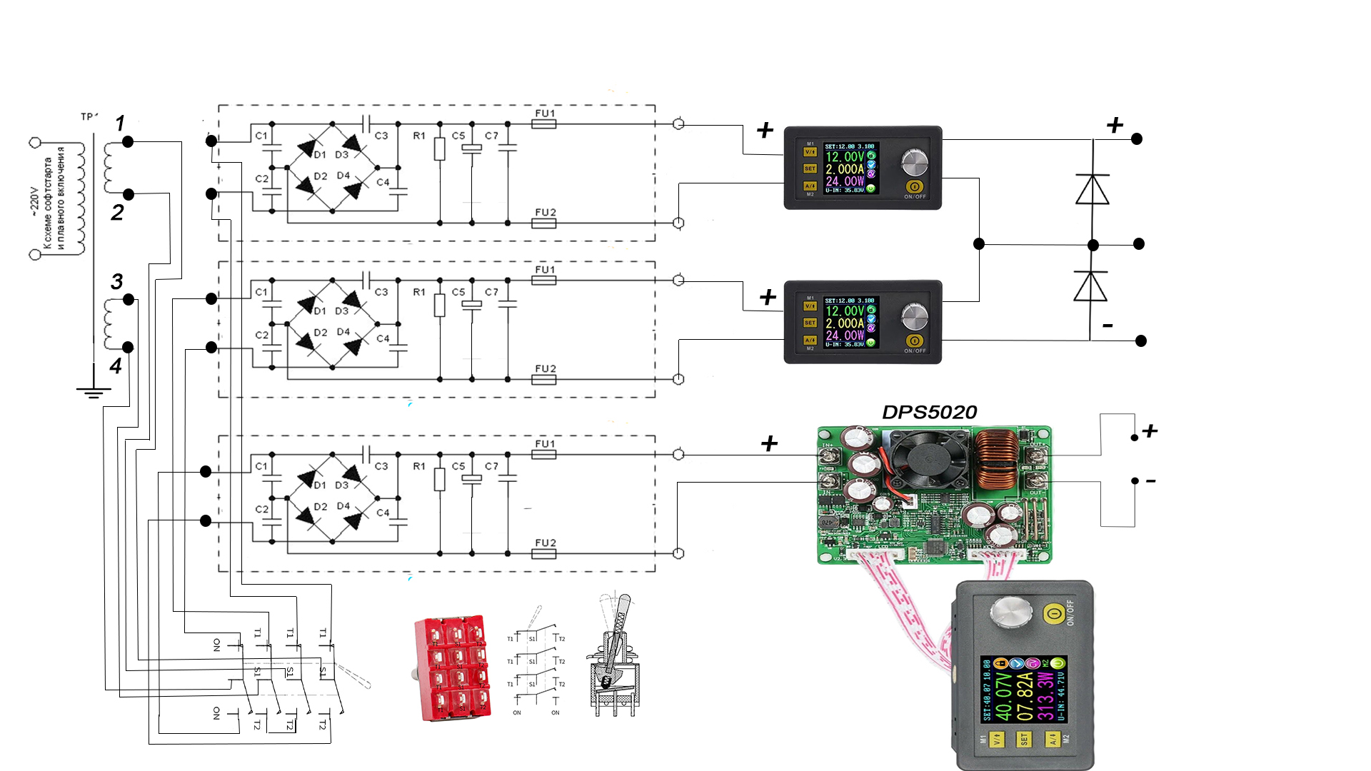Хорошо. А есть вариант переключения обмоток у трансформатора что б поставить отдельно 2 DPS3005? И при этом оставить DPS5020