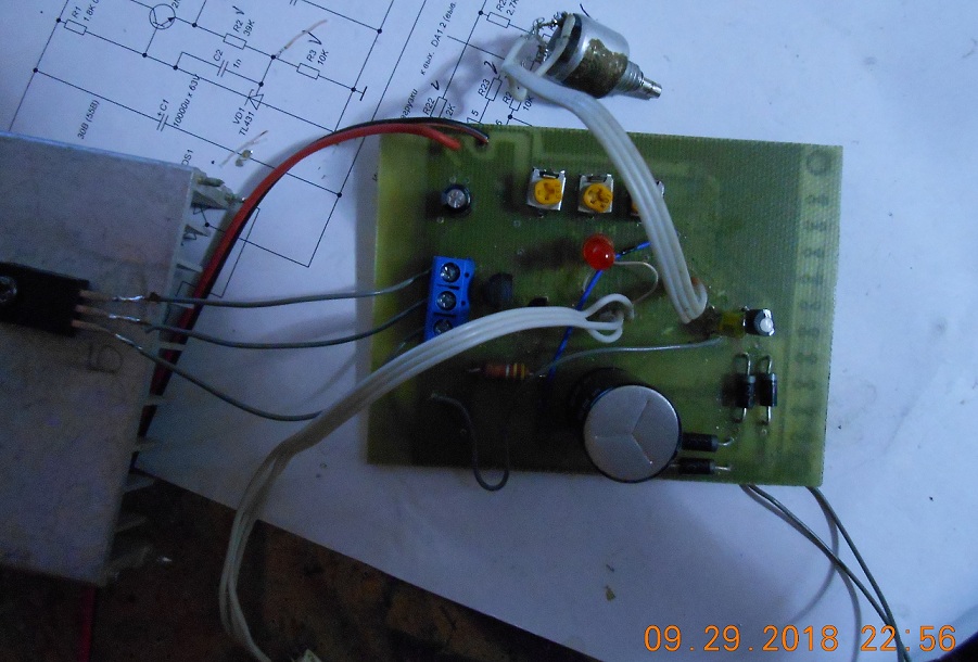 Повторил версию V14,схема http://forum.cxem.net/uploads/monthly_0 ... 060376.gif ,печатная плата "PS_VAR14.lay",не знаю как пересчитать R5,поставил 750 ом (при 3 ком плохо егулируется вых напряжение,плывет немного) Регулировка напряжения и ограничению тока работает замечательно,прошелся по плате осциллографом-все замечательно,еще не ставил в корпус