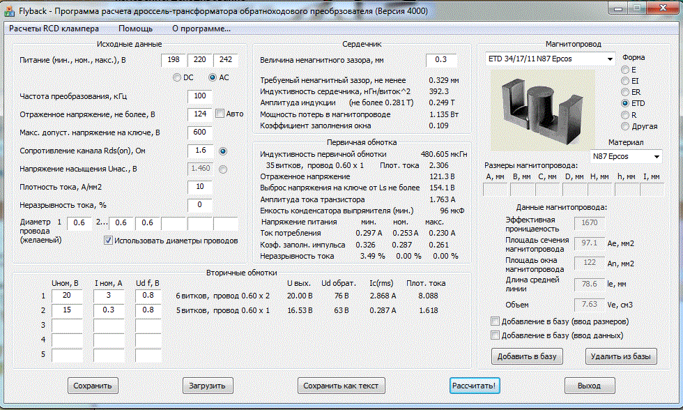 Здравствуйте. Уже неделю мучаюсь с блоком питания. Помогите пожалуйста. Это мой первый блок питания. В другой теме посоветовали почитать другие темы, но там проблемы либо что то греется, либо блок запускается с рывками. У меня проблема такая: блок запускается но не держит напряжение под нагрузкой. Например напряжение без нагрузки 27В, под нагрузкой ток 0.08 напряжение 23.2 , ток 1.3А напряжение 15.5В при этом греется только резистор R9. Пробовал играться с резистором в истоке транзистора менял на 0.33Ом, менял зазор в сердечнике. Фазность обмоток правильная, напряжение питания uc3842 15.9В. Единственное что не смог поменять от оригинала схемы это RDC-клампер. Причина в бюджете и местонахождении магазина радиодеталей. Во вложении схема с моими установленными номиналами,расчет трансформатора,фото блока и платы(она раскурочена потому что установил пробитый диодный мост). Пожалуйста помогите, я уже не знаю что делать, хоть выкидывай и делай на оптроне. Приму любые советы в любой форме.