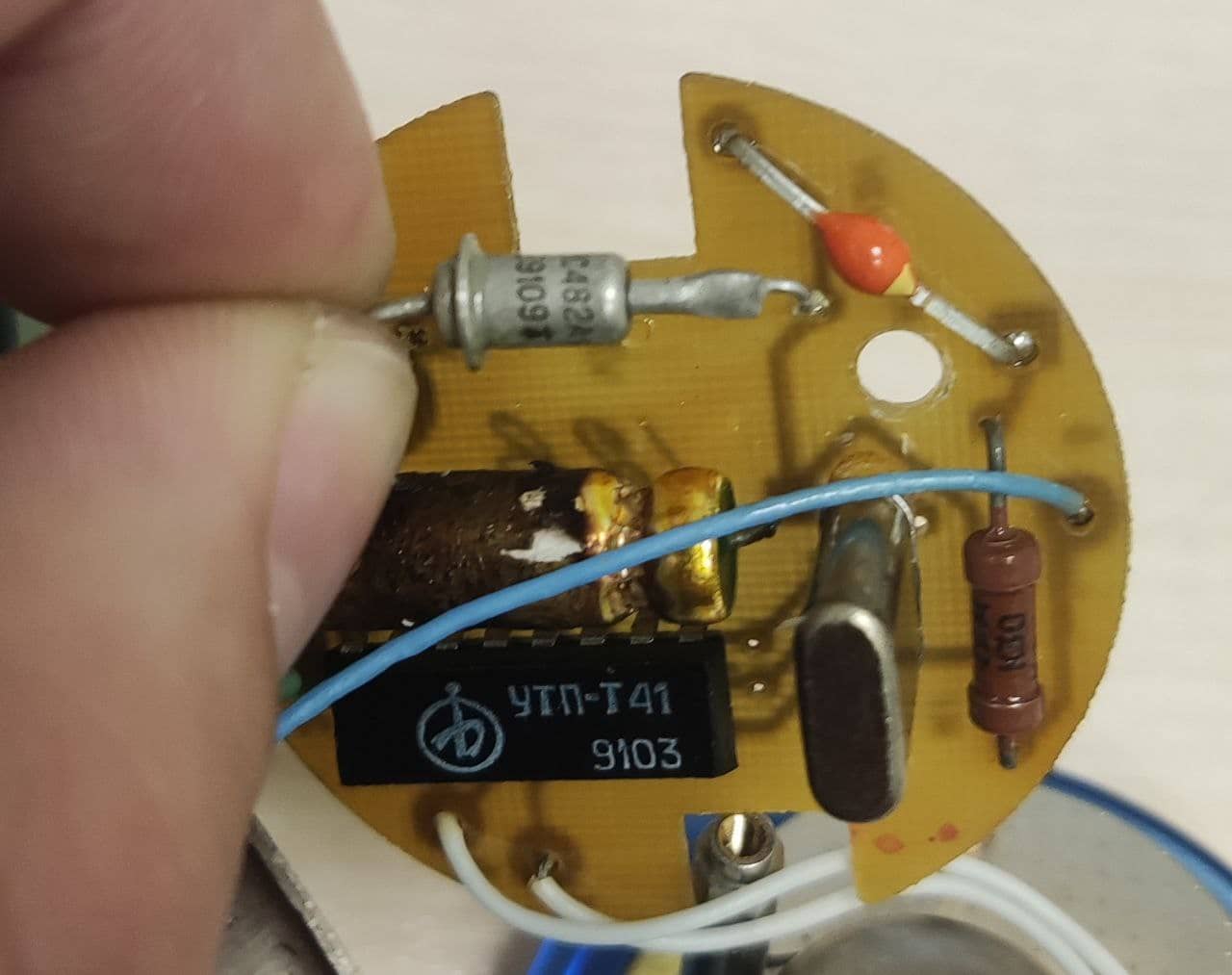 Там какой нибудь аксиальный к50-24 или 50-29 должен был стоять, но чего только не ставили в далеком 1991м году в технику. И КМ вместо КТ или К10-7 в голимый ширпотреб, и золотые микросхемы К564 на переходных платах вместо обычных 176/561, золотые транзисторы наподобие КТ608 вместо пластиковых 645, и много чего еще.