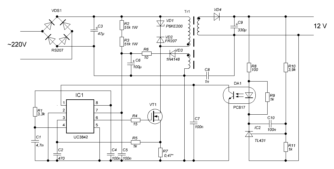 Старичок, а схема точно правильная? Оптопара заводится на первую ногу и замыкает ее на землю. Т.е. А) замыкает выход усилителя ошибки на землю да и еще без токоограничения Б) куда тогда делать компенсацию?