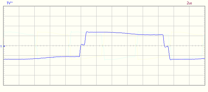 Вопрос по ТГРу? Собрал по этой схеме с повторителями, R4, R5 по 4,7 ома. Нагрузил на эквивалент нагрузки. Емкости по 3,7nf вместо полевиков. Тгр мотал на зеленом кольце фильтра от компьютерного бп. Первичку подбирал по методике Серого волка в районе 50 страницы. Получилось так на затворе (кондере). После добавления 15 витков первички до 50, стало ровнее на вершинах. Как лучше?