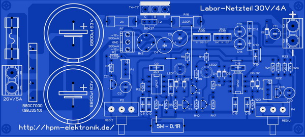 Здравствуйте. Переделав несколько схем лабораторных блоков питания. решил собрать по схеме с немецкого сайта: http://hpm-elektronik.de/ Не знаю кто собирал ещё эту схему, но я все же решил попробовать, дабы на некоторых сайтах об этой схеме не плохие отзывы. Пока сборкой не занялся, только что закончил разводку печатки под этот блок питания. Выписал не достающие детали с Али. У кого есть желание собрать, печатку и схему прилагаю. А описание схемы, на сайте http://hpm-elektronik.de/. Через переводчик онлайн можно перевести текст.