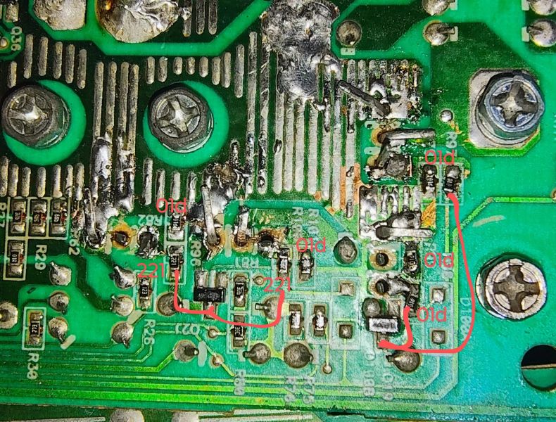 Добавлено after 1 hour 20 minutes 48 seconds: интересный факт, биполярный смд транзистор управляет левой парой мосфетов через резисторы 220 Ом, а правой парой через резисторы 100 кОм, это нормально? смотрю на донорскую плату от повермуст 800 и там везде управление через резистор 220 Ом. кто объяснит как такое возможно?