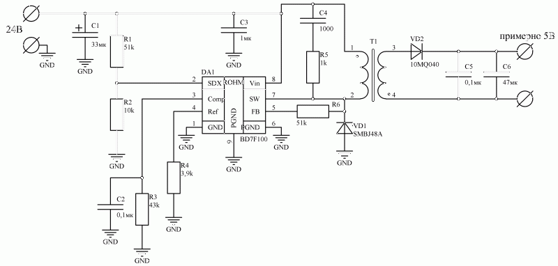 Для разминки попробовал сделать DC-DC. На чипе BD7F100EFJ-LB...ну да, японская экзотика, такое уж было под рукой. Взял вот такое кольцо: К80-03/08, такое большое просто чтоб проще было продевать витки. Попробовал посчитать обмотки по методике с Хабра. Получилось в первичке 28 витков, во вторичке 12...однако ни разу не уверен, что всё считал правильно, да и к данному чипу, наверно, нужен особый подход. Тем не менее, как-то оно у меня заработало: При изменении тока нагрузки от где-то 0,08 до 1А напряжение плавает в худших моментах до +8%, но в основном держится в пределах ±5%. КПД получился паршивенький, около 70%: сильно греется снаббер VD1. Но честно говоря...с этим чипом ранее у меня и на феррите результаты получались не лучше. На х.х. схема выдаёт порядка 15В вместо 5, но это было ожидаемо. В общем, наверняка я всё сделал неправильно, но карбонильное железо само по себе признаки жизни подаёт. Поэтому будем экспериментировать дальше.