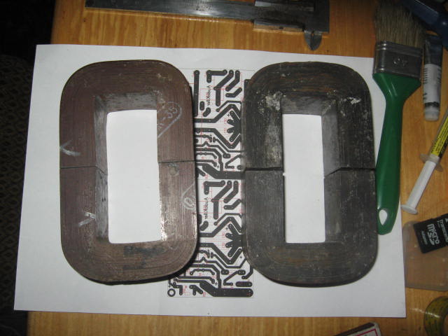 У тебя есть обойма чтобы стягивать сердечник? Ты на каждый из них хочешь, или совместить два сердечника для 500Вт? Тогда катушка одна будет, но нужна большая обойма сразу для четырех.