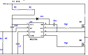 Всем привет! Набрел в инете на новую микросхему от IR IRS27951, которая позиционируется как Resonant Half Bridge Controller и сопровождается довольно мозгодробительным руководством по расчету резонансных преобразователей. Руководство, признаюсь честно, не осилил до конца, но хочу попробовать поставить ее в обычный полумост вместо столь любимой народом IR2153. В отличие от последней, у IRS27951 более мощные драйвера полевиков, есть возможность настроить Dead Time, есть Soft Start и триггерная защита от КЗ по току нижнего полевика. И это при том, что обвязка микросхемы практически не изменилась. И вот, собрал такой кусок схемы из даташита: Ct = 470пф RT =22КОм MOSFET 2SK4106 CBS 0.47мкФ Uпит +12в