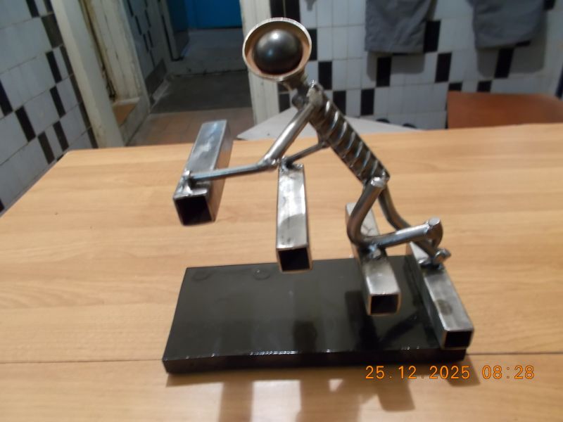 А вот совсем другая история. Мой бригадир делает всевозможные поделки. Их у него множество... покажу последние 2. и вот такое Всё изготовлено из подручного материала и соединено электросваркой.