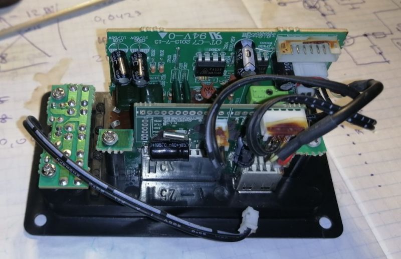 Разобрал Боковую панель , где плейер с флешек и темброблок. Будем питать темброблок от аккумов, но надо подать ещё и отрицателное напряжение на его операционники , хорошо сделаем DC-DC инвертор на 34063 - не проблема.