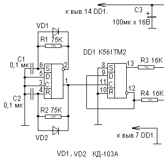 Пожалуй сделаю на триггере. К176ТМ2 аж 1982 года выпуска. Защитные диоды есть , 7-14 звонится как диод. Попробовал с разными C и R , нормально. Поставлю последовательно с 5.1 к переменный на 150к. Емкости по 680 пФ будут. Сильно мелкую емкость не хочу, хотя проверял, и с 270 пФ работало. PS 4000 пФ - это не номинал, это "4700" измеренные LCR