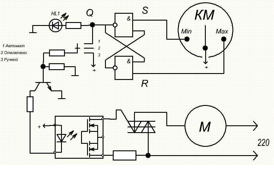 Да, но в моей схеме симисотор не будет ведь работать как триггер, у нас ведь переменка на входе, и когда стрелка поднимиться выше минимального давления, контакт разомкнётся и симистор закроеться, а мне нужно что бы он закрылся только когда стрелка дойдёт до максимального значения и замкнёт там контакт. То что силовая часть на симисторе то ясно, а меня интересует именно сама триггерная часть которая будет реагировать на замыкание и размыкание контактов манометра.