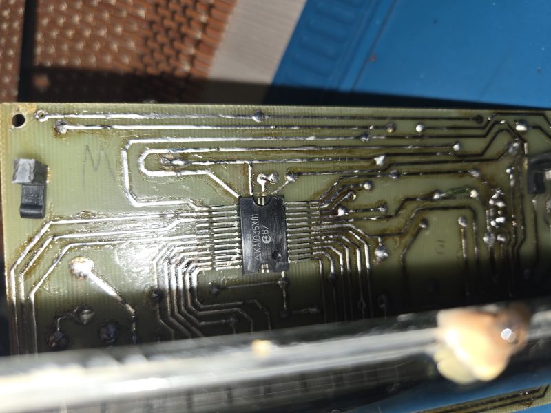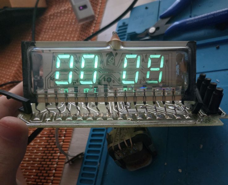 Плату пропаял, остатки канифоли, конечно же, уберу — не кидайте камнями. При проверке у деда правый минутный индикатор уже плохо горел.