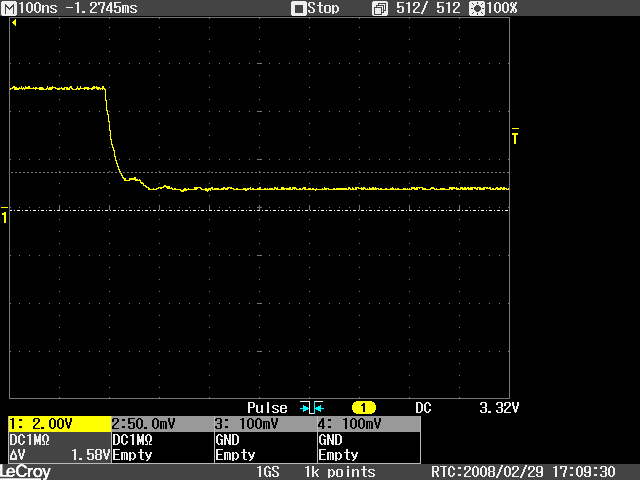 снял осциллограмму на сигнальной линии при подключенном сенсоре. Как видно из нее, размах колебаний намного меньше. Что же может уменьшать амплитуду?! внутренняя емкость сенсора Cpp?