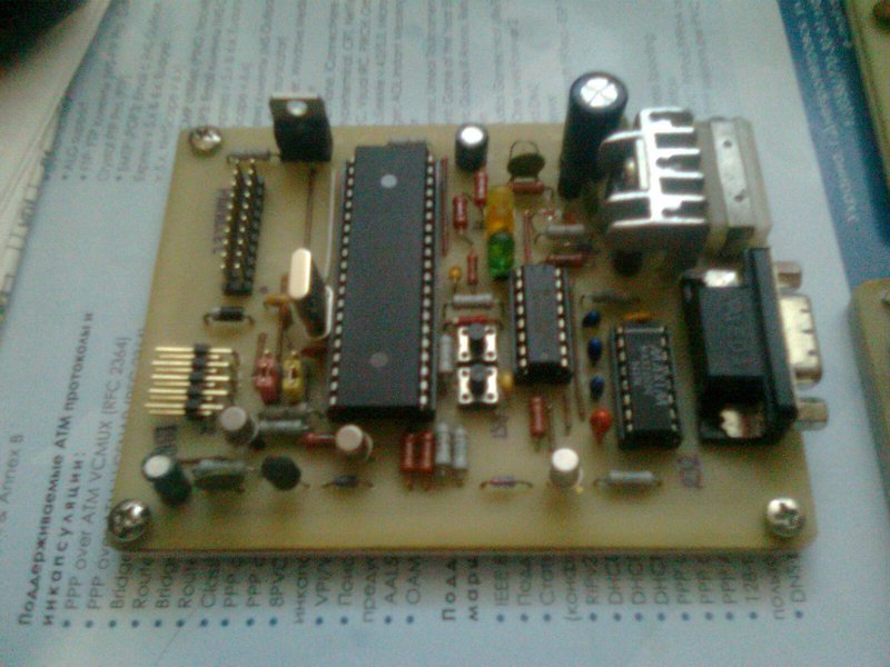 Следующий баг, отловленный мною, это то, что программировал Atmega8535 файлом прошивки от 4 студии, писал PonyProg, файлом *.hex, предоставленным одним из участников вместе с конвертером ebn2hex. а студию я скачал последнюю, версии 5, 600 Мегабайт размером. Вот с этой студией работать прогер не хотел в упор, при запуске студии 4 все заработало. программатор проверен на контроллерах ATMega8A и ATTiny2313. ATTiny2313 оказалась неубиваемой, у нее нет возможности отключить SPIEN, и она совсем не работает в параллельном режиме, а вот над ATMega8A я уже поиздевался как только мог, выжила Других контроллеров у меня пока нет, но думаю, после добавления патча на lm358 ваще проблем не будет. и на последок, попробовал кварц на 8 мегагерц, как и предполагалось, светодиоды мигают исправно, а вот связи с компьютером наладить не удалось, вобщем только 73728, и не париться!!!!! Пробовал с вот таким девайсом фото0083 работает как часы, а вот пони раза в 4 медленнее, но тоже работает Ну и напоследок несколько фоток в плохом качестве Вердикт: Замечательный программатор, при аккуратном повторении все работает с первого раза (я свой как собрал и больше ни разу паяльником не коснулся) все глюки и баги с настройкой в ПО, потом удивляешься, и почему сразу не заработало Огромное СПАСИБО всем, кто так или иначе был причастен к Этому Устройству. особое htscooter, за моральную поддержку К Модераторам: Если посчитаете нужным, мои прежние посты можно подчистить, тема и так очень обширная