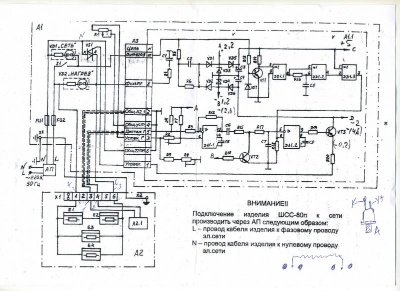 Имеется сушильный шкаф. По схеме надо подключать через АП,строго с N и L. Если включить через вилку и наоборот L N, то на симисторе VS1 будет короткое.Можно как то сделать развязку? Еще сейчас включаем без нагрузки и на VD2 "нагрев" есть напряжение. При включении нагрузки,лампочки 220В,напряжение исчезает.