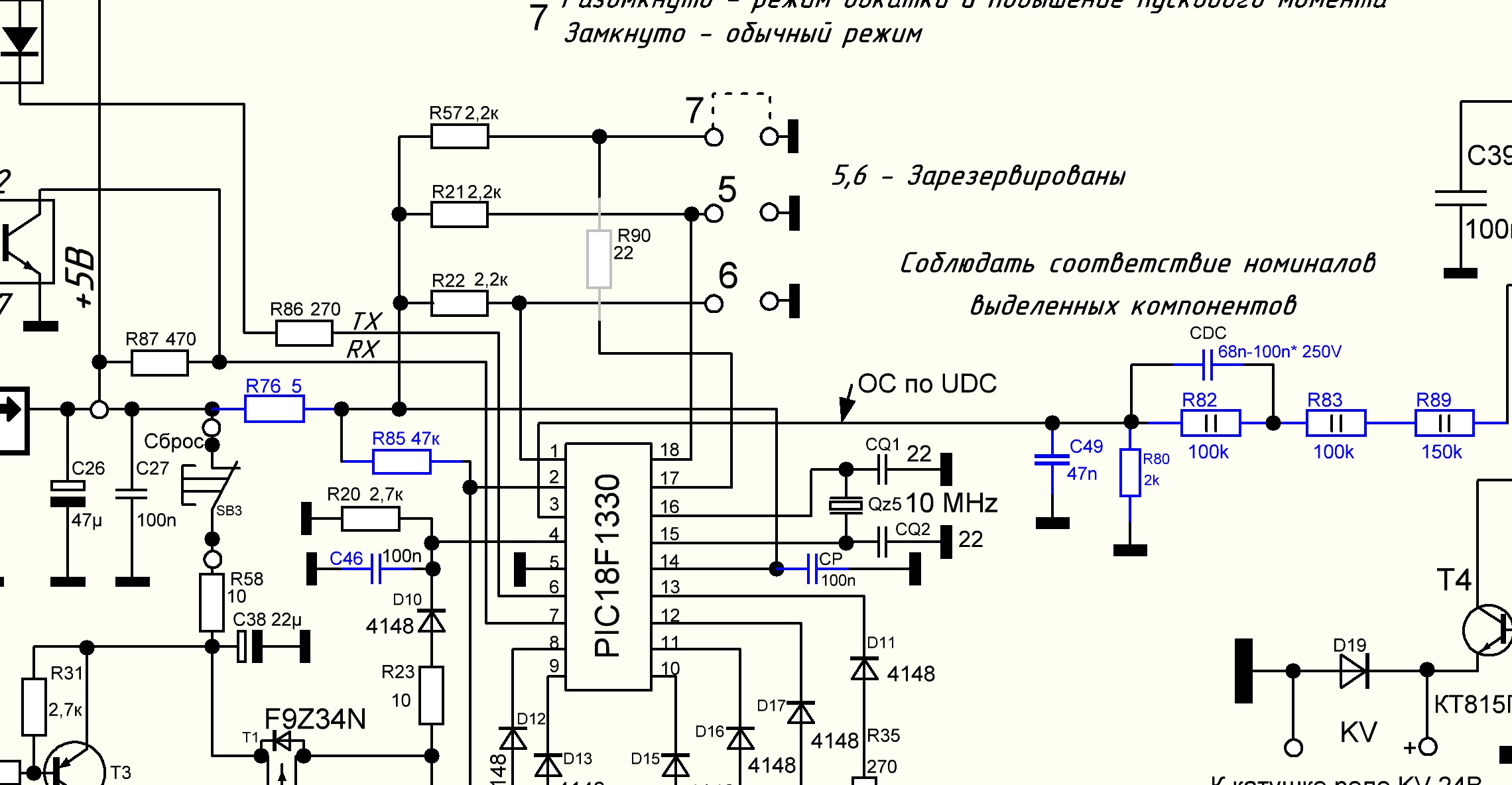 Значит не с этим связано. А что за транзистор стоит T1, типа F9Z34, может он плохо открывается, сколько напряжение на 4 ножке и какие уровни напряжения после оптопар связи U1 и U2, на выходах TX и на 7 ноге моторного?
