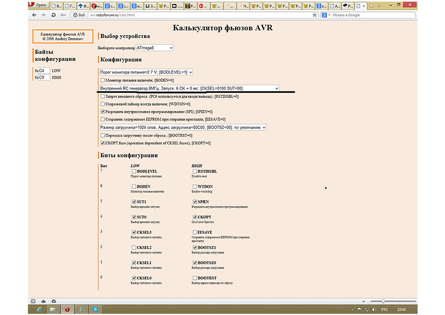 Или я что то туплю или согласно калькулятору фьюзов прошивка от внутреннего генератора?? Если я неправ поправте. Кто это счастье собрал попробуйте отключить кварц ради интереса. Просто я PonyProg не использую мне сним не везет и он еще невсегда корректно работает с USB программаторами. Поэтому я применяю оболочку SinaProg поэтому и приходится применять калькулятор фьюзов. Кстати он меня неразу еще не подвадил.