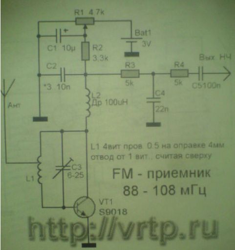 Не работать может любое устройство и добиться оного факта легко может абсолютно любой не специалист. Схема действительно коварная в том плане, что не подает ни каких признаков жизни, даже если абсолютно работоспособна. Нужны высокоомные наушники и тишина окружающей обстановки. При настройке на станцию издает легкий щелчок и затем очень чистый сигнал без каких либо "электронных" шумов. Работает в различных вариантах - изголялся по всякому, насколь позволяла фантазия. Для экспериментов желательно начать вот с этого варианта: